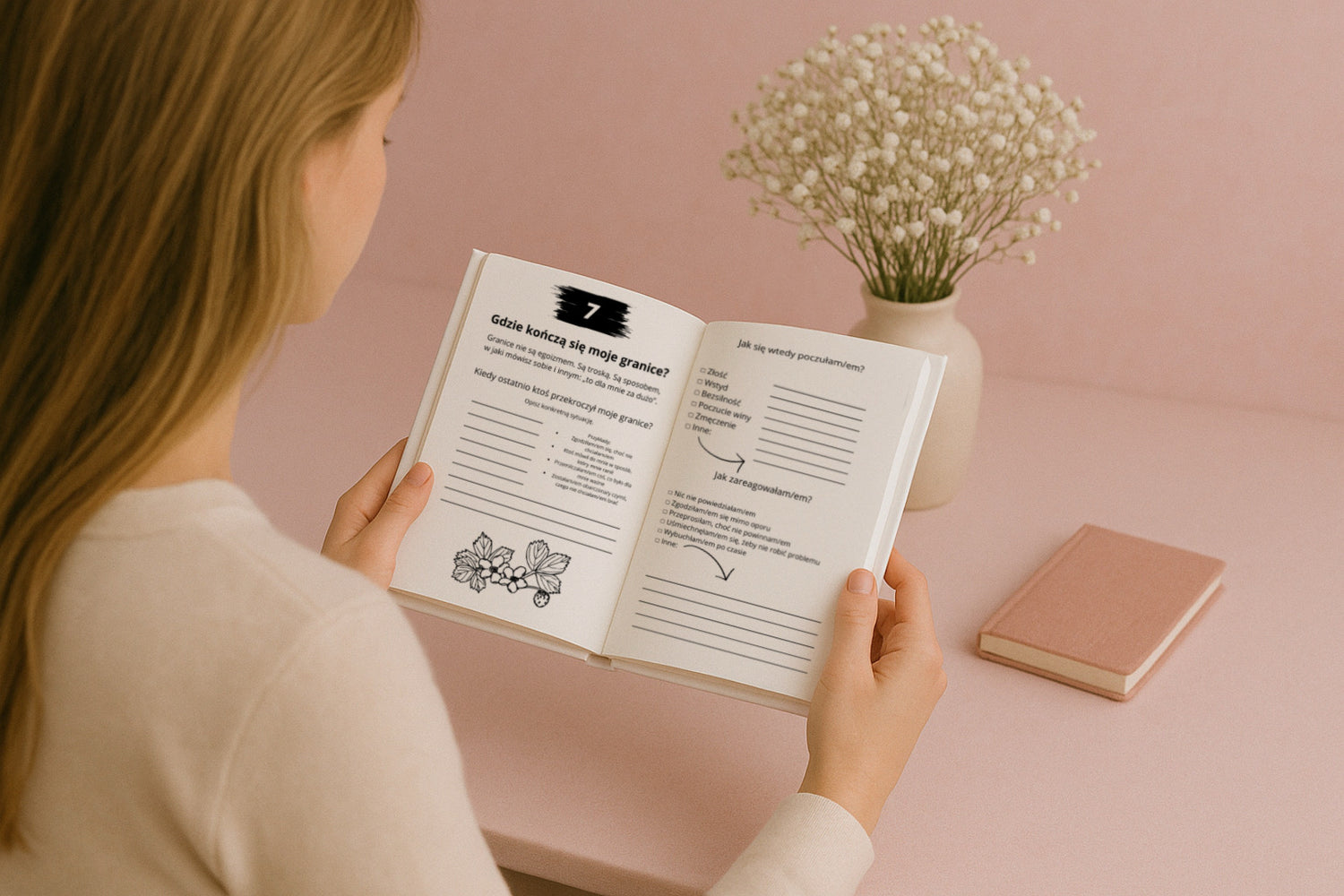 Więc stworzyłam Dziennik Przetrwania Dnia Codziennego. Nie po to, żeby robić z siebie terapeutkę. Nie po to, żeby mówić Ci, jak masz żyć. Tylko po to, żeby dać Ci to, co mnie uratowało – pytania, ciszę i przestrzeń. Bez presji. Bez oceny. Bez deadline’u. Żebyś mogła zacząć rozmawiać… z tą osobą, która zna Cię najlepiej. Z Tobą samą. Bo od tego wszystko się zaczyna. Od tej jednej decyzji: